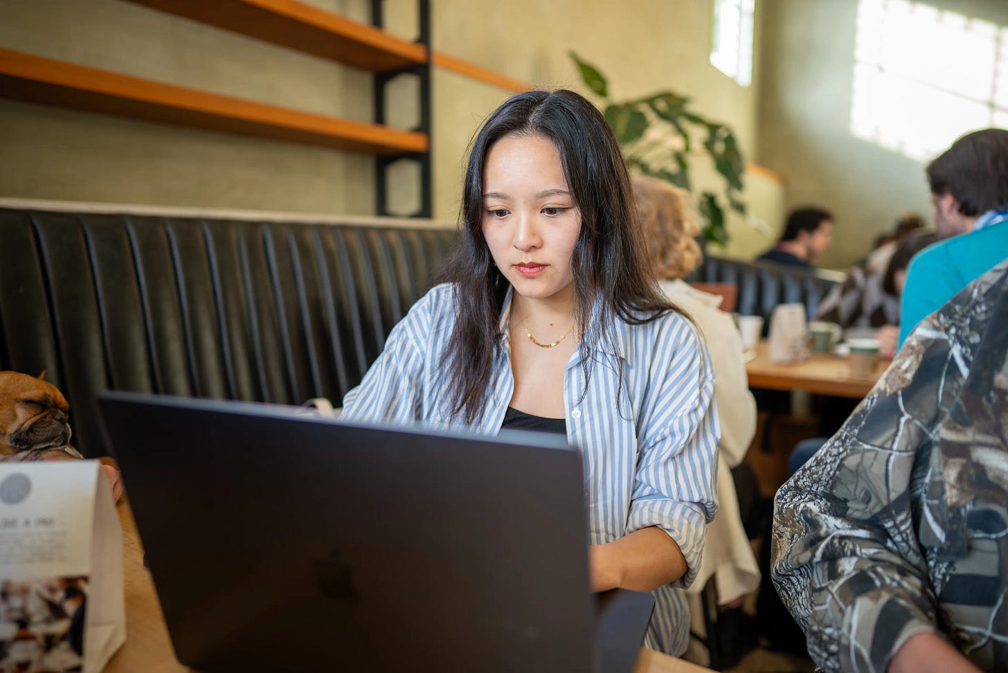 I’m far from her first mentee. Her younger sister also recently started a career in product management, though Jasmine will deny having any influence. Her sister’s friends at Stanford often call her for advice, so much that Jasmine says she’ll only talk to the friends her sister really likes. She’ll act annoyed, like helping others is a distraction, but you can tell she enjoys being a positive influence on people.